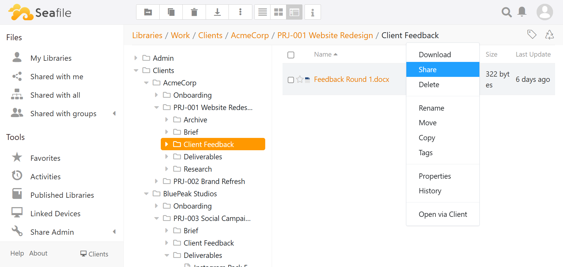 Seafile is the place where your files live.